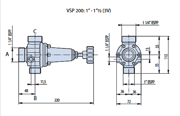 Присодинительные размеры: 1"1/4x1"x1"1/4