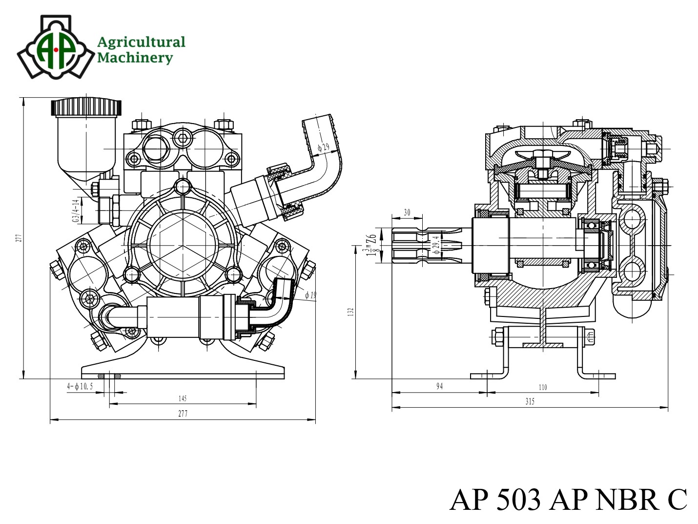 AP 503 NBR C - трех мембранный диафрагменный насос для перекачивания жидкостей на среднем давлении. Применяется в садово-огородном хозяйстве: теплицах, фруктовых садах или виноградниках для распыления пестицидов в режиме среднего давления. И как полупрофессиональная модель в сельском хозяйстве.