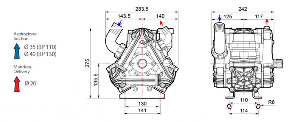 Мембранный насос марки COMET® серия ВP110 рассчитан на подачу воды под давлением до 20 бар, относится к насосам низкого давления. Успешно используется в агропромышленном комплексе для полива и орошения, а также широко применяется в коммунальной технике. Конструкция и используемые материалы позволяют перекачивать агрессивные химические вещества, используемые в сельском и коммунальном хозяйствах. Насосы оснащены торцевыми частями и коллекторами из техно-полимера, для максимальной химической устойчивости.