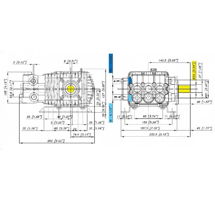Плунжерный насос высокого давления с кривошипной передачей Bertolini TML 1328-HW. Номинальное давление 150 бар, расход воды 13 л/мин, частота вращения вала 1450 об/мин. Гладкий вал 24мм, шпонка.