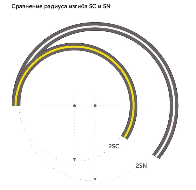 Шланги высокого давления с оплеткой SC более удобны в работе - они тоньше шлангов SN, немного легче, имеют меньший радиус изгиба.