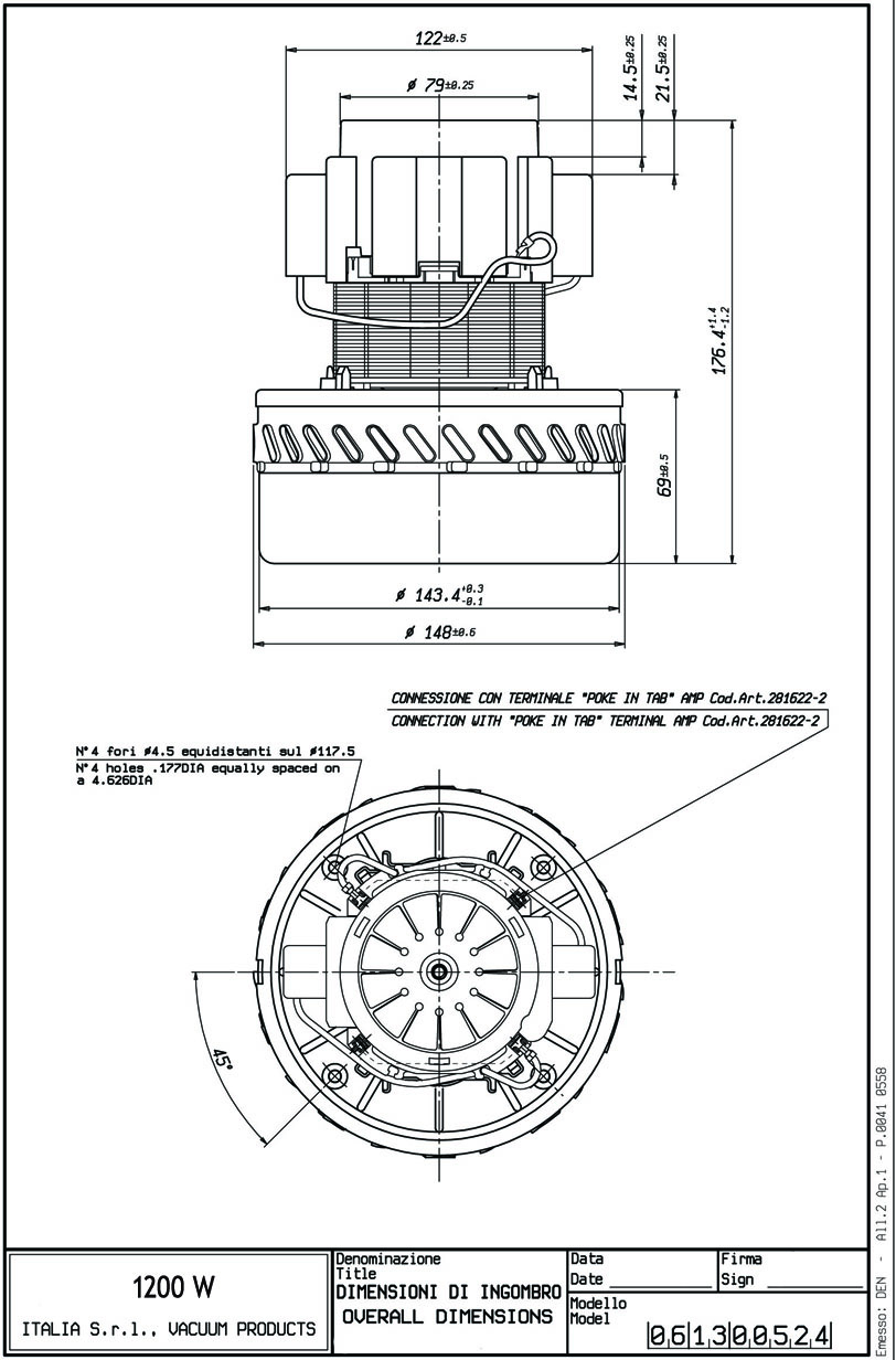 Вакуумный мотор 11 ME 06 (1200Вт, 220В, D-144мм, H-176мм, h-69мм) AMETEK (11 ME 06)